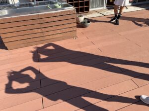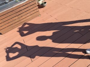陽を遮るものがないので、陽が当たっている日は室内よりもポカポカしています。