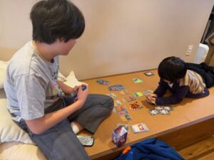 MINANOHA 最終日は、スタッフ研修の日でした。日常では、なかなかスタッフが揃う時間をとることが難しいので、貴重な時間でした。 前半は、『東京都からの伝達研修』や『MINANOHA らしさ』について話しました。 後半は、立川のボードゲームカフェへ。MINANOHA には、たくさんのボードゲームがありますが、まだまだ知らないゲームもあります。ボードゲームカフェで、店員さんおすすめのボードゲームをやりながら、『これは、〇〇くんが好きそうだね?』とか『これは、〇〇ちゃんとやりたいな。』と子どもたちの事を思いながら楽しみました。