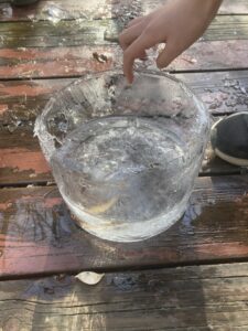 バケツに張った氷に気づき、